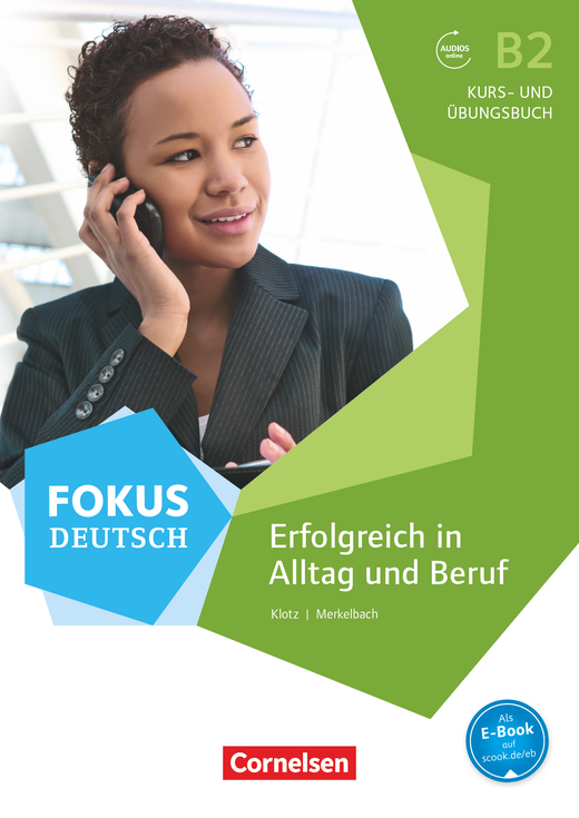 A B2 szintű nyelvkönyv életszerű szövegekkel és tevékenységközpontú feladatokkal bővíti a nyelvtani és szókincsbeli ismereteket. A tankönyv 15 fejezetben ötvözi a mindennapi és a szakmai nyelvtanulást, és a németországi szakmai élet követelményeit mutatja be. Felkészíti a nyelvtanulókat a Goethe-Zertifikat B2, valamint a Deutsch B2, Deutsch B1-B2 Beruf és Deutsch B2+ Beruf telc nyelvvizsgákra.